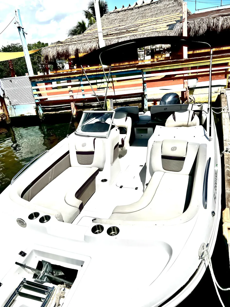 This 22 foot deck boat rental has a 8 person capacity and is excellent for fishing, swimming at the sandbar or touring the Key West waters.